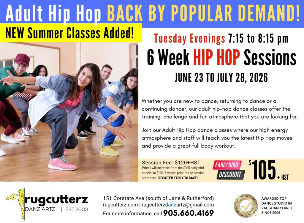 Whether you are new to dance, returning to dance or a continuing dancer, our adult hip-hop dance classes offer the training, challenge and fun atmosphere that you are looking for.