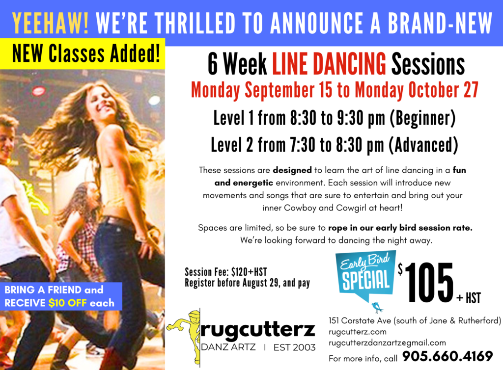 This program is designed for beginners and those with experience to learn the art of line dancing in a fun and energetic environment. Each session will introduce new movements and songs that are sure to entertain and bring out your inner